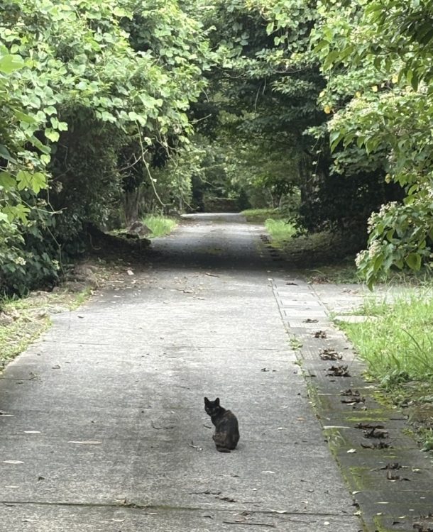 「屋久島センバスビレッジ」の坂の真ん中に、小さな黒いシルエットがありました。